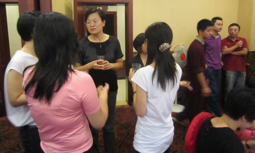 图片说明:师生干杯