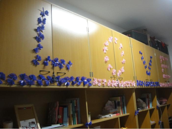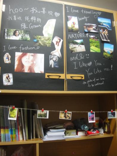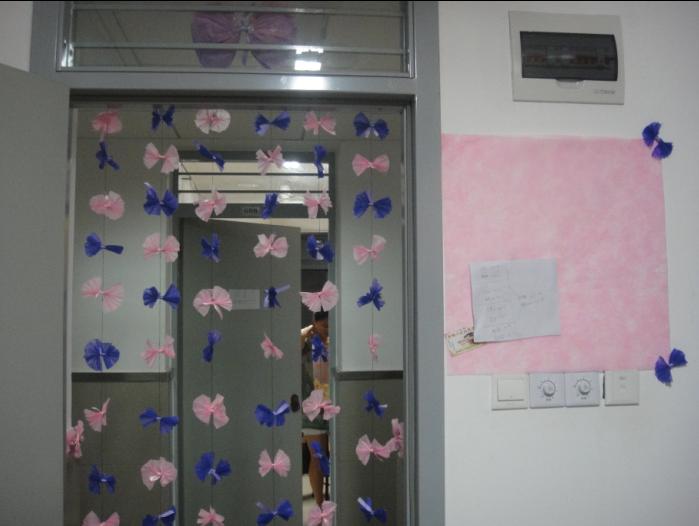 得知这一消息,外院的同学们便迅速行动起来。各寝室成员纷纷展开讨论,充分发挥想象力与创造力,设计出了寝室布置方案。随后,同学们对身边随处可见的物品,比如食品包装盒、各色彩纸等进行了改造和利用,这些看似平常的材料在同学们灵巧的手下立刻变成了美观别致的装饰品。又或是将喜爱的明星或是书籍海报贴在寝室醒目处,彰显个性。还有不少寝室将成员的名字制作成精美的剪纸,用来布置寝室的大门,使人倍感温馨。