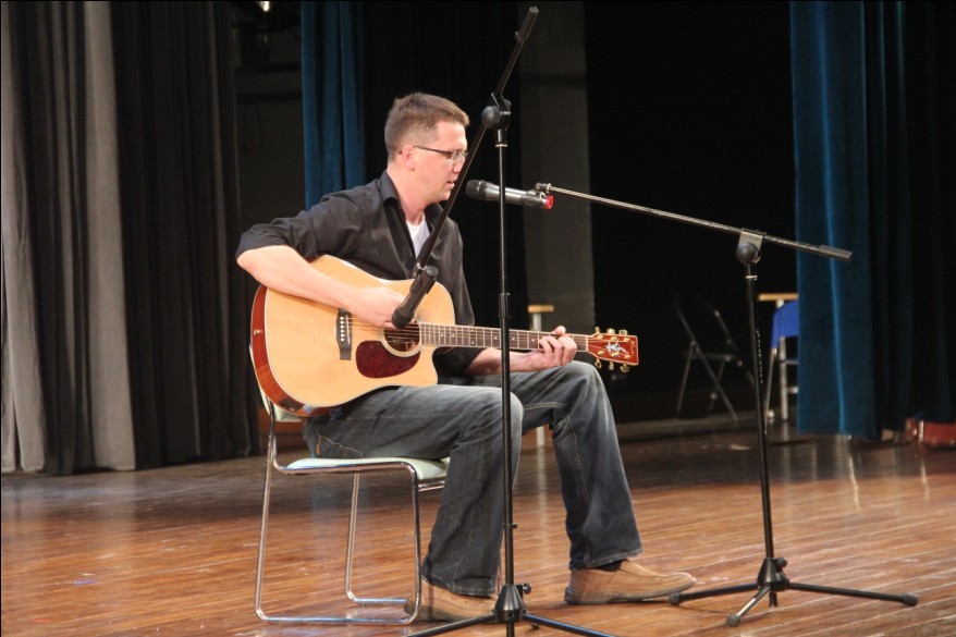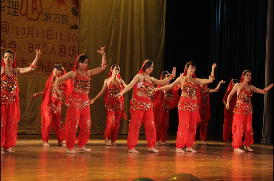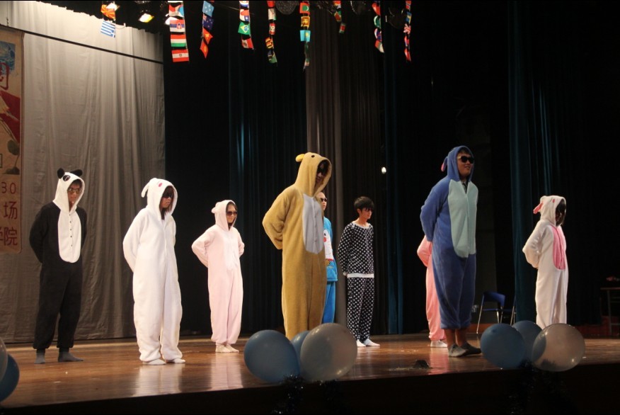 在颁奖环节之后,英语111班为大家奉献了一出充满奇幻色彩的舞台剧《歌剧魅影》,逼真的表演令观众们徘徊于现实与虚幻之间。随后,德语112班热情火辣的草裙舞,英语114悠扬舒缓的印度舞,两首风格迥异的舞曲在晚会中独树一帜,别具风情,令现场的同学们徜徉于美妙的舞蹈海洋。日语112班的话剧《范进中举》引得台下欢笑声一片。看到新生们给力的表演,外院教师也情不自禁,纷纷上台“过把瘾”。 何天雄、裴文波老师的歌曲和京剧表演充分展示了老师多才多艺的另一面,黄玉红和三村老师的对唱以及德语外教Alex的倾情献唱更是将晚会推向了高潮。最后,这一场精彩的视觉盛宴在德语111班所带来的动作整齐划一的苏格兰集体舞中华丽地落下了帷幕。