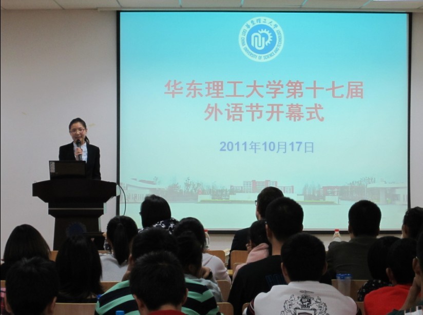 晚7时,颜静兰老师为本次外语节致开幕词,她指出外语节是同学们展示个人风采、提高英语技能、感受英语魅力的良好机会,希望同学们积极投入到本次外语节的活动中。最后,颜老师预祝本次外语节取得圆满成功,同时希望同学们在接下来的一系列外语节比赛中能有精彩的表现。随后,来自上海中学的英语外教Carter先生作了题为《English Study Strategy and English Reading Skill》的演讲,他与同学们就英语阅读能力及学习策略作了研讨与交流,Carter先生反复强调“快乐阅读”与“思考阅读”。在谈到如何享受阅读本身带来的乐趣时,Carter老师以一首诗歌为例,从其内容、语调变化方面进行赏析,体现出文字本身具有的美。他还深入分析了不同的学习动机,在了解到同学们的阅读习惯后,对其外语学习提出指导性建议。他精彩生动的演讲让台下的同学们听得目不转睛。