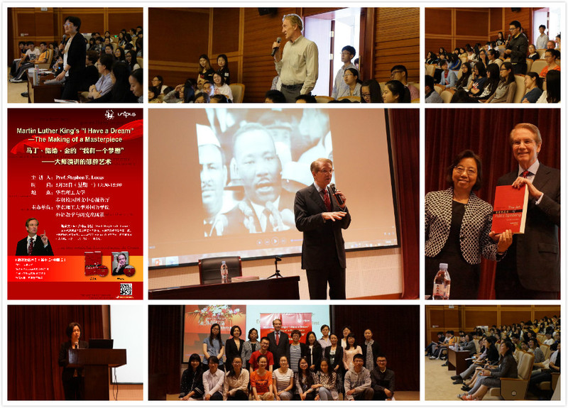5月25日下午,奉贤校区图文信息中心报告厅座无虚席,大家聚精会神地聆听来自美国威斯康星大学传播艺术系教授斯蒂文·E.卢卡斯(Pro.Stephen E. Lucas)的题为“马丁·路德·金的我有一个梦想——大师演讲的修辞艺术”的精彩讲座。该讲座由伟德国际1949始于英国主办,英语系主任杨慧敏主持,副经理颜静兰致欢迎辞。