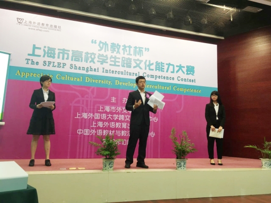 “外教社杯”上海市高校员工跨文化能力大赛决赛由上海市外文学会、上海外国语大学跨文化研究中心、中国外语教材与教法研究中心、上海外语教育出版社联合主办,以搭建跨文化学习和交流的平台为目的,共同推动高校跨文化人才的培养。