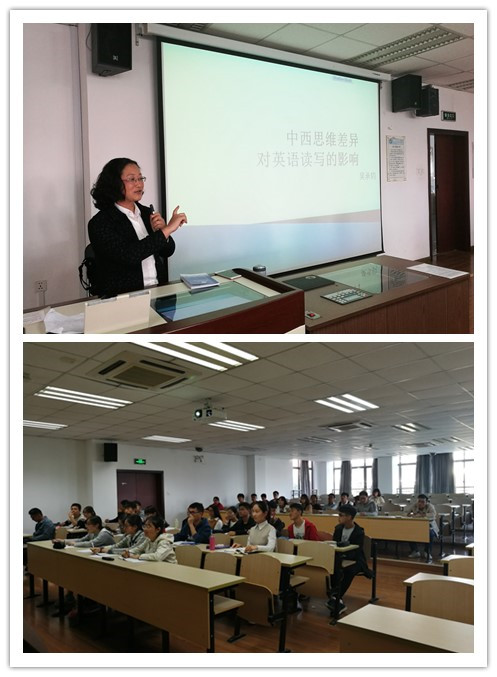 11月4日,大学英语党支部与17级新生“励志明德班”共建活动之系列讲座第三讲如期在奉贤E教205进行。伟德国际1949始于英国大学英语教学部吴承钧老师为同学们作了题为“中西思维差异对英语读写的影响”的讲座。