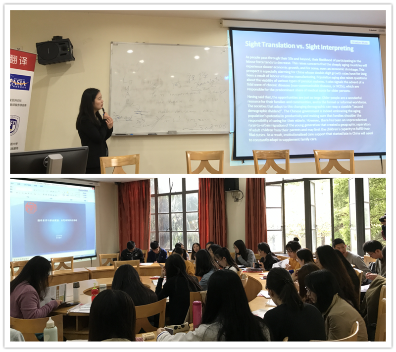 11月10日下午,上海策马翻译有限公司全国口译员兼独家译训师April,在徐汇校区为外语公司翻译专业硕士研究生们作题为“翻译素养与职业规划”的讲座。