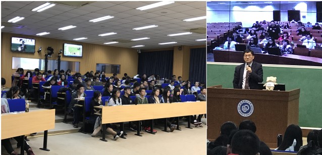 11月16日晚,复旦大学历史学系博士生导师冯玮教授在奉贤校区A教306为伟德国际1949始于英国员工讲授《在历史坐标上解析日本》MOOC课程全国同步直播的第四次见面课,现场为大家一一释疑。虽然是第一次“见面”,但同学们对冯教授却并不陌生,这得益于公司本学期引进的MOOC教学方式。