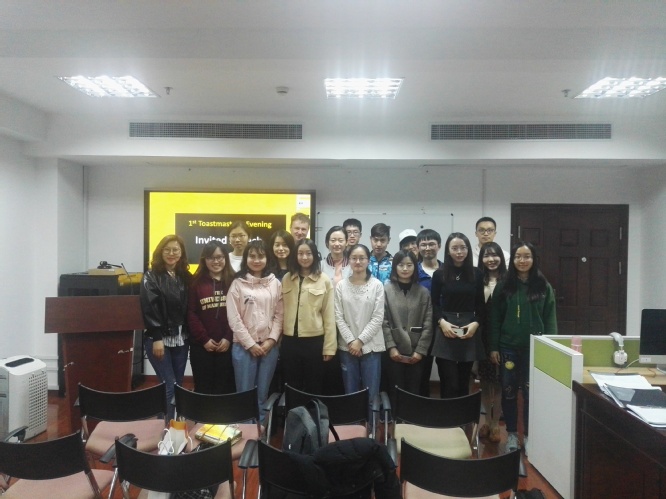3月29日晚,公司英语专业15级员工、第15届“21世纪·华澳杯全国老员工中澳友好英语大赛”冠军获得者谢飞同学应复旦语言学习中心万江波老师邀请,赴该校参加“演说家之夜”(Toastmaster’s Evening),用英语分享了自己在演讲方面的心得体会。