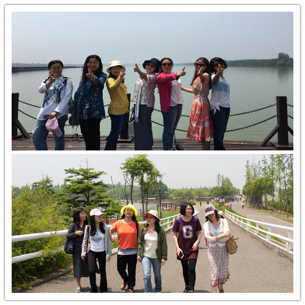 教师们从公司正门集合出发,途经世界上最大的隧道工程----上海长江崇明越江隧桥,一睹“一桥飞架南北,天堑变通途”的壮举,抵达湖水清澈、环境优雅、自然风光秀美的明珠湖,在湖畔愉快地合影留念。