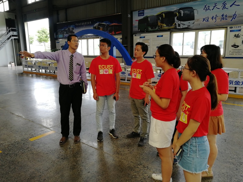 在南京金龙客车有限公司,人事部经理乔达首先结合公司宣传片为实践团队介绍了公司的整体情况和发展方向,并亲自带领实践团队参观了新能源客车的制造流程,从生产到调试,从零件到组装,向实践团队一一讲解了其中的原理和重点。随后,实践团队针对参观过程中的疑问和各自感兴趣的内容进行提问,在经理的细致解答下对该公司和行业有了更进一步的认识。