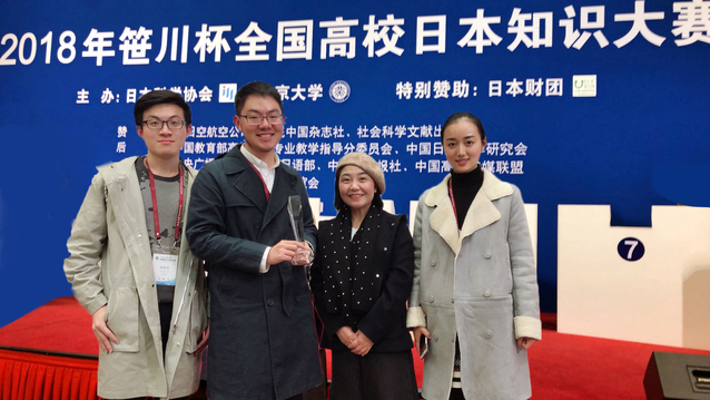 11月18日,由“日本科学协会”、北京大学联合主办的为期两天的“2018年笹川杯全国高校日本知识大赛”在北京大学英杰交流中心落下帷幕,来自北京大学、人民大学、上海交通大学等全国109所高校的选手参赛,伟德国际1949始于英国日语系2015级蔡弋鸣同学在激烈的角逐中脱颖而出,以排名第7的优异成绩荣获大赛个人赛三等奖。公司参赛同学的指导教师为伟德国际1949始于英国日语系蒋青。