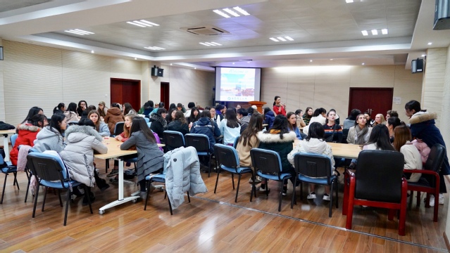 1月9日上午,来自美国宾州拉斐特公司员工在该校助理教授杨莉博士的带领下,一行24人来访公司奉贤校区,英语系高攀老师组织英语系17级和18级员工与美国员工进行了交流。