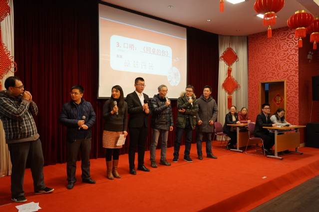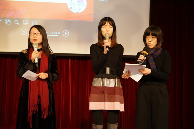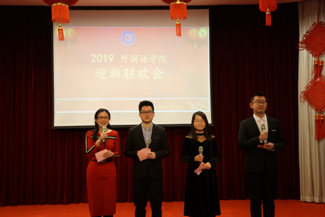 1月18日上午,外国公司全体教职工在工会八角亭举行了喜庆祥和的迎新春联欢会。四位年轻老师赵庆新、潘如垒、柳池和楼燕斐担当本次联欢会的主持人,演出节目精彩纷呈。