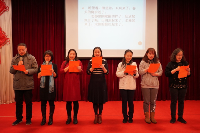 研究生英语教研室王捷,邵惟韺,韦晓保,黄淑芳,王琦,施敏,管博等老师为大家表演的方言版的散文诗朗诵《春》,妙趣横生,逗得大家哈哈大笑。