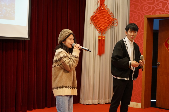 校园“十佳歌手”黄麒玮(法公司) 洪银燕(外语)表演对唱 《Vincent》。两位歌手嗓音独特,意蕴悠长,让教职工们领略了异域风情。