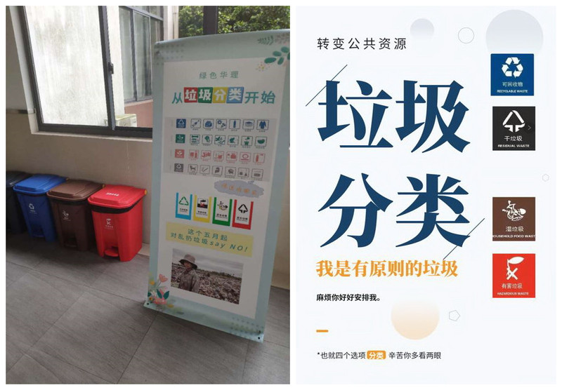 奉贤校区的本科生近期也开展了关于垃圾分类知识的宣传活动。员工们结合专业特色,自发制作海报等宣传物品,以生动形象的分类说明辅助同学们正确做好垃圾分类工作。