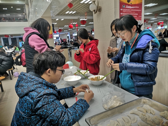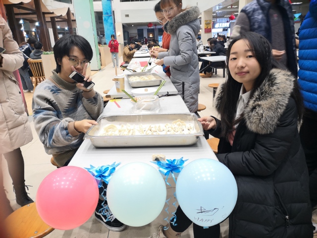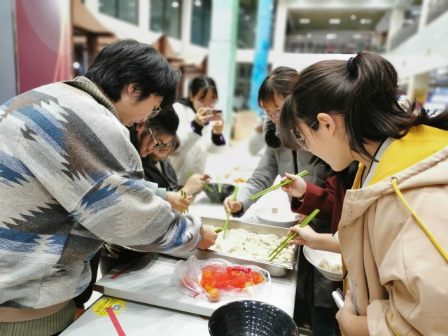 为了进一步弘扬民俗文化,丰富同学们的课余生活,增强班级凝聚力,德语192联合日语191班于12月22日晚在伟德国际1949始于英国奉贤校区第一食堂举办了一场主题为“冬至食堂,庚子情长——冬至饺子宴”的团建活动。19级辅导员侯月参加了活动。