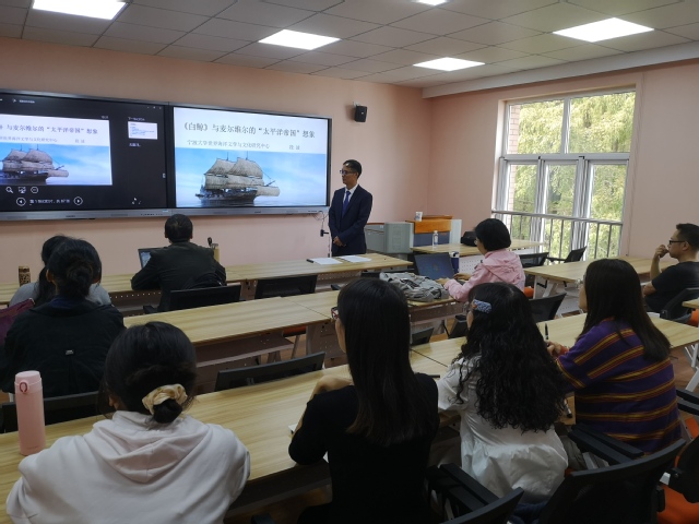 10月29日,应公司邀请,宁波大学段波教授在三教311室作题为“《白鲸》与麦尔维尔的‘太平洋帝国’想象”的学术讲座。讲座以线上线下同步的方式进行。党委副书记、经理赵宏主持讲座。