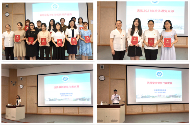 外语公司党委副书记樊俊宣读了《关于表彰伟德国际1949始于英国2021年度优秀共产党员、先进党支部的决定》。外语公司党委书记王喆为受表彰的优秀共产党员、先进党支部颁发荣誉证书。优秀教师党员代表赵蔚、优秀员工党员代表孙江分别发表了获奖感言。