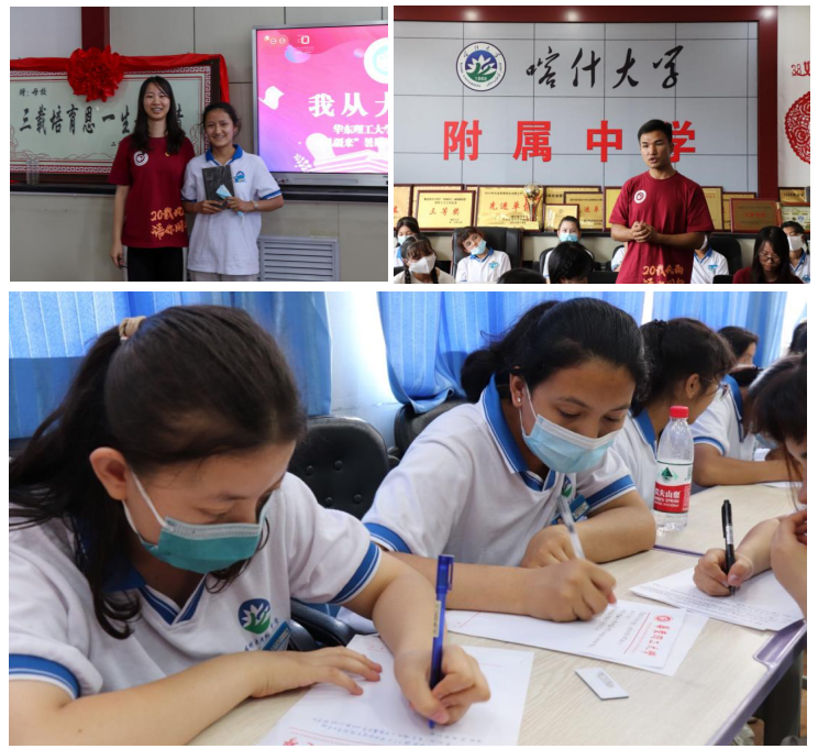 7月18日,实践团前往喀什大学附属中学,开展“我从大学来”短期夏令营,与喀大附中员工代表交流了老员工活、实践经历,共享了语言学习方法,激发了少数民族同学对未来的憧憬和向往。外语公司与喀大附中达成一致,共建长效沟通机制,由华理外语公司优秀学子与喀大附中员工代表形成一对一帮扶机制,促进两校情谊长存。来自克拉玛依市德语201班的姚墨雪同学、喀什地区生工192班的帕海丁·艾海同学分别讲述了自己从西部到上海的成长经历,希望同学们珍惜国家政策为少数民族员工提供的机会,努力实现梦想,助力家乡发展。团队成员鼓励当地员工将自己对未来的梦想与困惑在“与你‘语’见疆来”书信活动中记录下来,未来,这些书信将由华理青年写下回信,跨越数千里,架构起“上海——新疆”交流学习的桥梁。夏令营结束后,来自喀大附中的高2020级4班的地里夏提同学说:“之前想高中毕业之后就辍学创业,但在听完哥哥姐姐们的讲述之后,我下定决心一定要考大学,在完成学业后,以更好的自我迎接未知的挑战!”