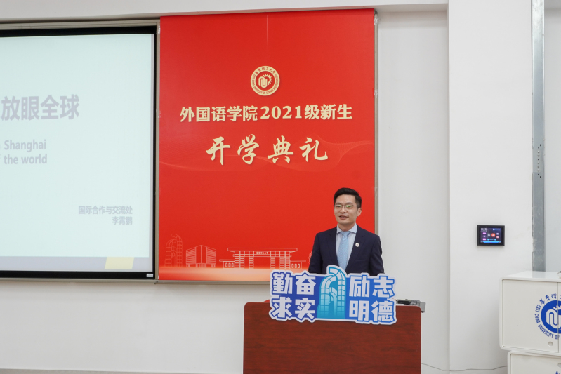 9月23日下午,外语公司2021级新生开学典礼在奉贤校区C200教室举行。外语公司党委书记王喆,党委副书记、经理赵宏,校国际合作与交流处副处长李霄鹏,公司副经理张正军、吴建伟、韦晓保,哈德斯菲尔德大学科技创新孔子公司中方经理郑国锋,研究生导师组组长、外国语言研究所所长王建国,德语系副主任倪晓慧,全体新生班导师、辅导员以及161名本科新生、53名研究生新生参加典礼。典礼由外语公司党委副书记樊俊主持。