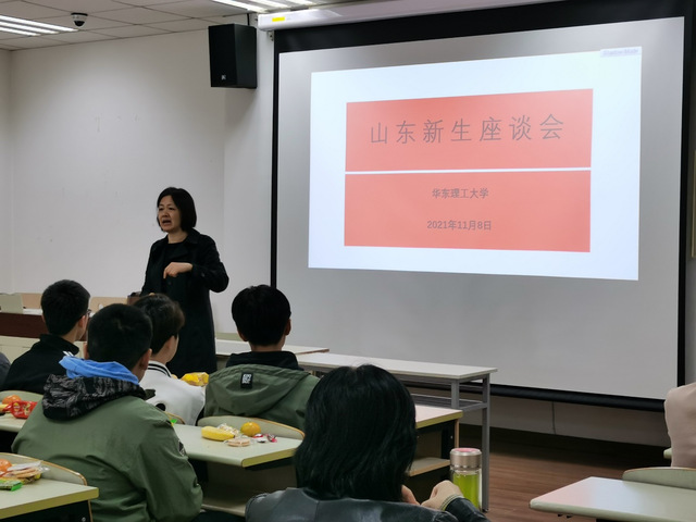 座谈会在轻松愉悦的氛围中进行,来自山东、山西省的新生和老师们聊家乡,聊老员工活,从家乡的人文地理、美食特产,到初入华理的学习体验、生活趣事,大家在欢声笑语中逐渐熟悉彼此,现场其乐融融,师生欢聚一堂。