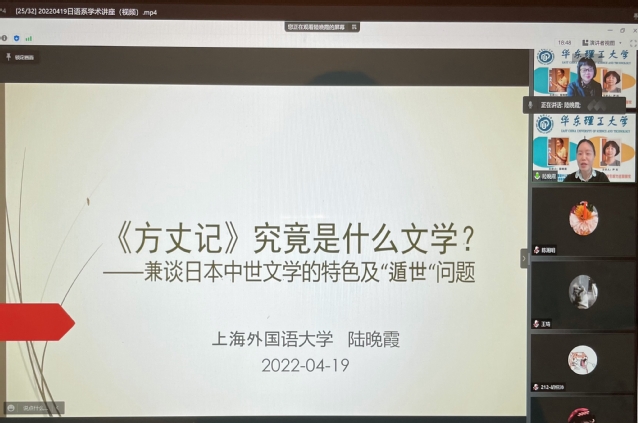 本次讲座采取线上形式,由日语系主任梁海燕主持,公司160余名师生参与了讲座,并在会后与陆晚霞教授就“遁世者”与“隐者”的区别、晚年“自我反省”的内涵等问题进行了深入的探讨。