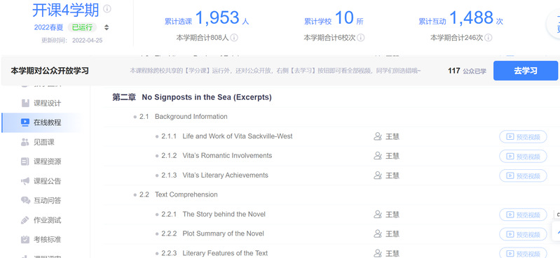 国家级一流课程高级英语教学团队在王慧的带领下,基于疫情当下的员工新需求和网络教学新挑战,优化混合式教学实践,运用新技术、设计新模式,摸索出一条适应新情况的教学路子。疫情期间,团队共组织员工观看自制慕课视频44章节,布置和批改各类型线上训练38余次,设计并实施线上师生、生生互动项目100余次。