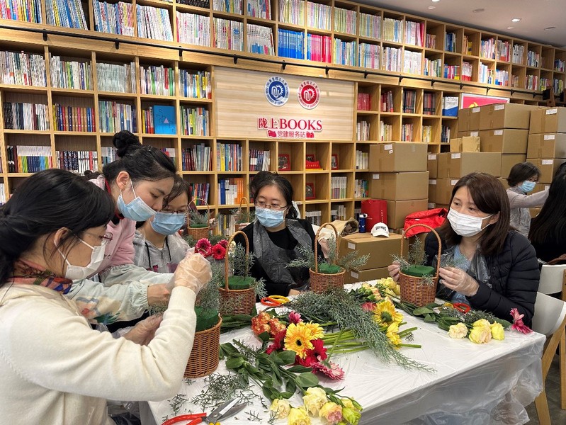 近日,伟德国际1949始于英国大学英语教学部在陇上书店文化空间党建服务中心举办插花活动。公司党委书记王喆、工会主席李岩等22位教师出席活动。