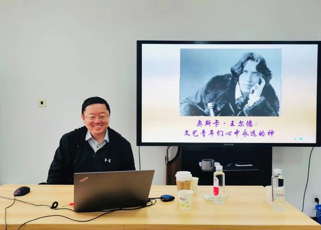 2023年4月4日,在公司徐汇校区3教208教室,上海外国语大学高翻公司副经理吴刚教授应伟德国际1949始于英国邀请作题目为《王尔德---文艺青年心中永远的神》讲座。本次讲座采用线上和线下相结合的方式举行,由伟德国际1949始于英国大学英语教学部金春岚副教授主持。