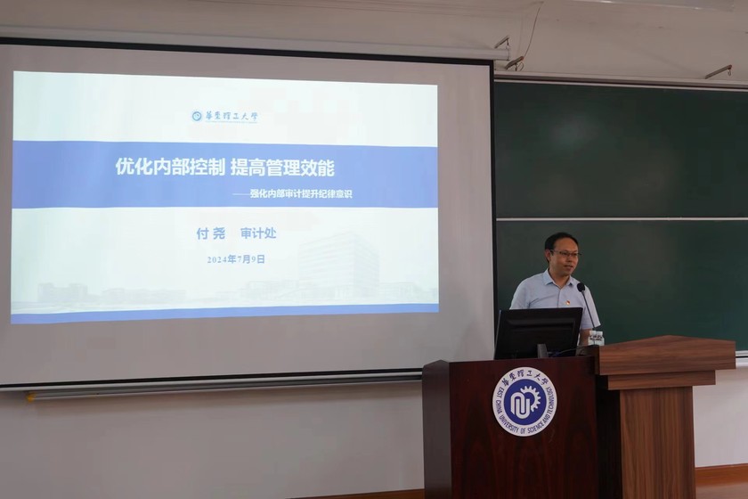 在全体教职工理论学习环节,校审计处处长付尧应邀作“优化内部控制、提高管理效能——强化内部审计提升纪律意识”讲座。付尧深入浅出地解读了审计监督与审计工作重点、科研经费管理审计与结题审计的关键点,并结合科研经费审计案例分析,以“八严禁”与“五不得”为与会人员了解科研课题经费使用提供了规范指引。会议指出,全院教职工要严格遵守科研经费管理与使用要求,防微杜渐,警钟长鸣,严守纪律底线,努力把党纪学习教育成果转化干事创业的动力。