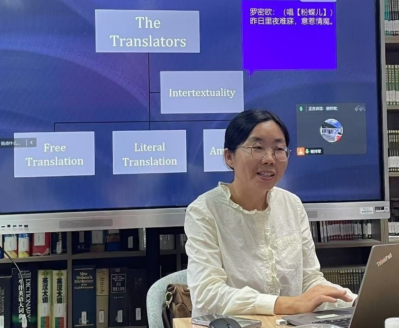 张之燕副教授分享了昆曲《罗密欧与朱丽叶》的英译经验,探讨了翻译中的互文性,并提出了《哈姆雷特》《夫的人》等昆曲剧目的国际传播潜力。她还提及了京剧形式歌曲的英译,展示了戏剧翻译的新方向。