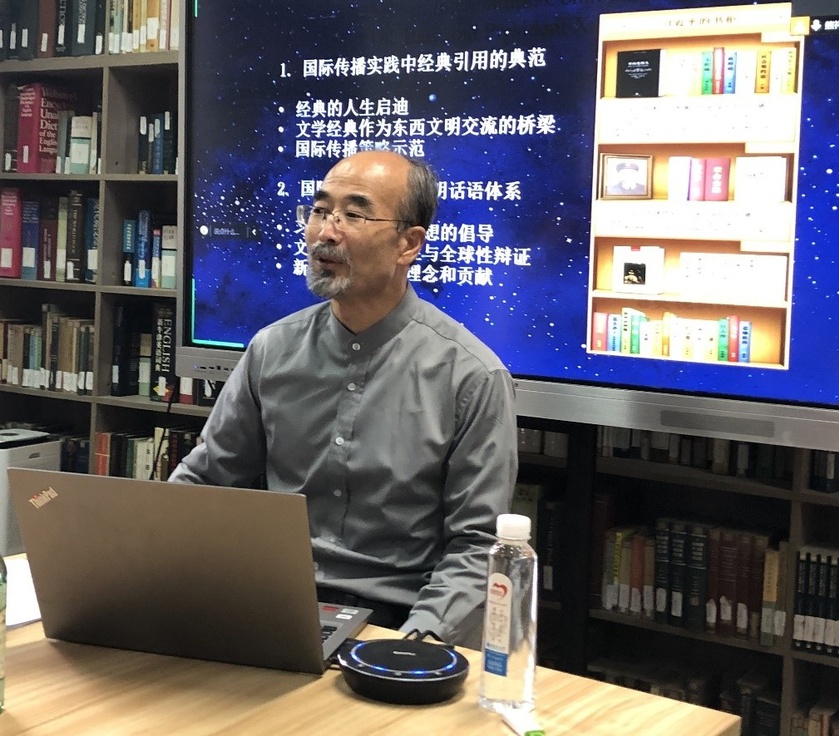 杨林贵教授阐述了外语人在国际传播中的使命、经典的互文互鉴与国际传播力、朱生豪莎士比亚中国化经典翻译以及中国经典对外传播的翻译形式,着重阐释了朱生豪莎士比亚戏剧经典翻译中的互文性,以及汤显祖《牡丹亭》的英译对中国文化对外传播创新途径的启示,赋予外语人跨文化传播者的角色。