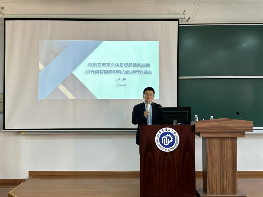 为深刻领会习近平文化思想的丰富内涵,10月29日下午,上海报业集团东方网数字传播研究院执行经理朱琪应公司邀请在三教201室作题为“建设习近平文化思想最佳实践地,提升具备国际影响力的城市软实力”的专题辅导报告。公司全体领导班子成员、全体教职工参加。