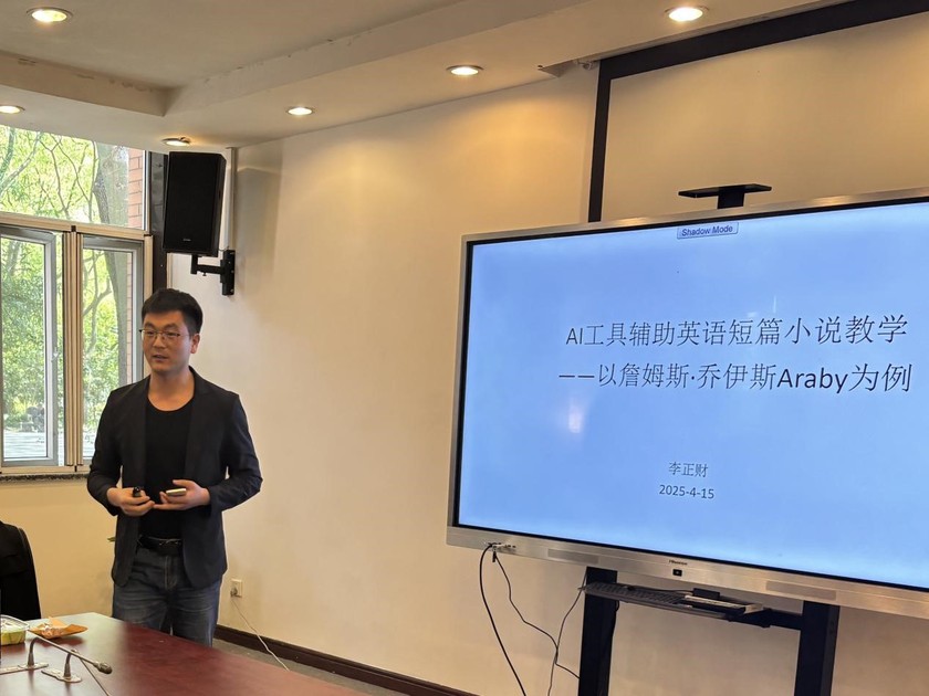 李正财博士以“AI辅助英语短篇小说教学——以詹姆斯·乔伊斯《Araby》为例”为题,分享AI工具在教案设计、课件制作中的实践。他指出AI生成内容的呆板性依赖人工修正,呼吁员工反思“为何阅读文学”的本质问题——即培养理解自我、倾听他人与对话世界的能力。
