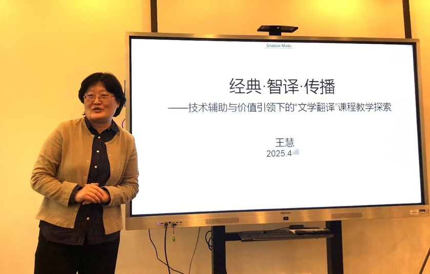 王慧教授在“经典·智译·传播:技术辅助与价值引领下的文学翻译教学探索”汇报中,详细阐述了“知、能、用、明、思、辩”六维培养目标。她结合具体案例,提出通过校内学习平台整合技术资源、建设思政与名译案例库、开展翻译竞赛等第二课堂活动,以及改革考核方式,激发员工翻译创造力。王慧教授特别指出,AI翻译工具虽能提升效率,但无法替代员工的文化敏感度与批判性思维,教师需在教学中强化学术诚信教育,引导员工平衡技术依赖与人文价值。