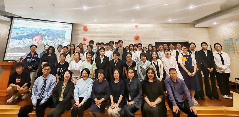 颁奖结束后,何玮老师与加藤先生对本次演讲比赛进行总结发言,向获奖同学表示祝贺,并鼓励同学们在今后的日语中学习更上一层楼。